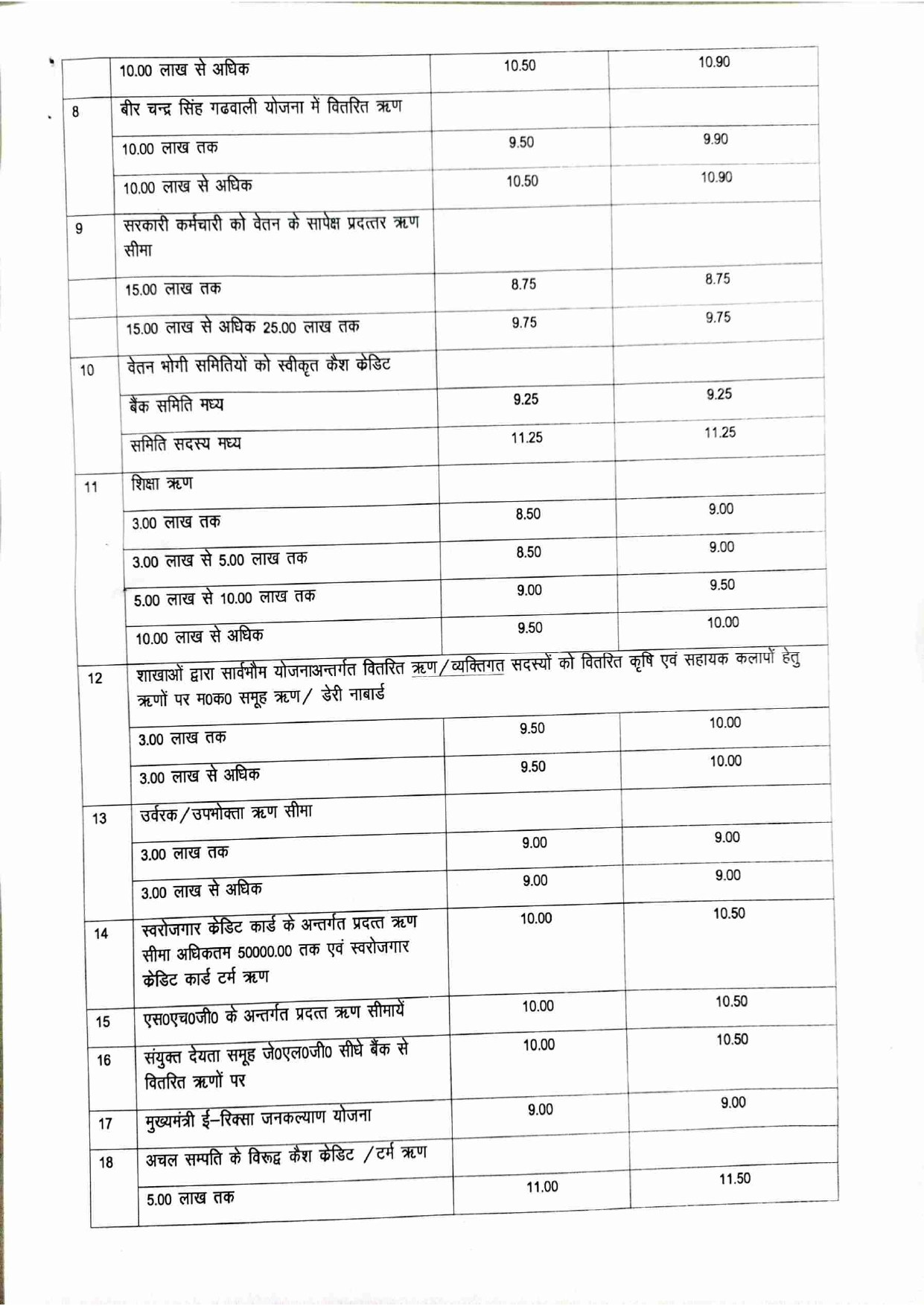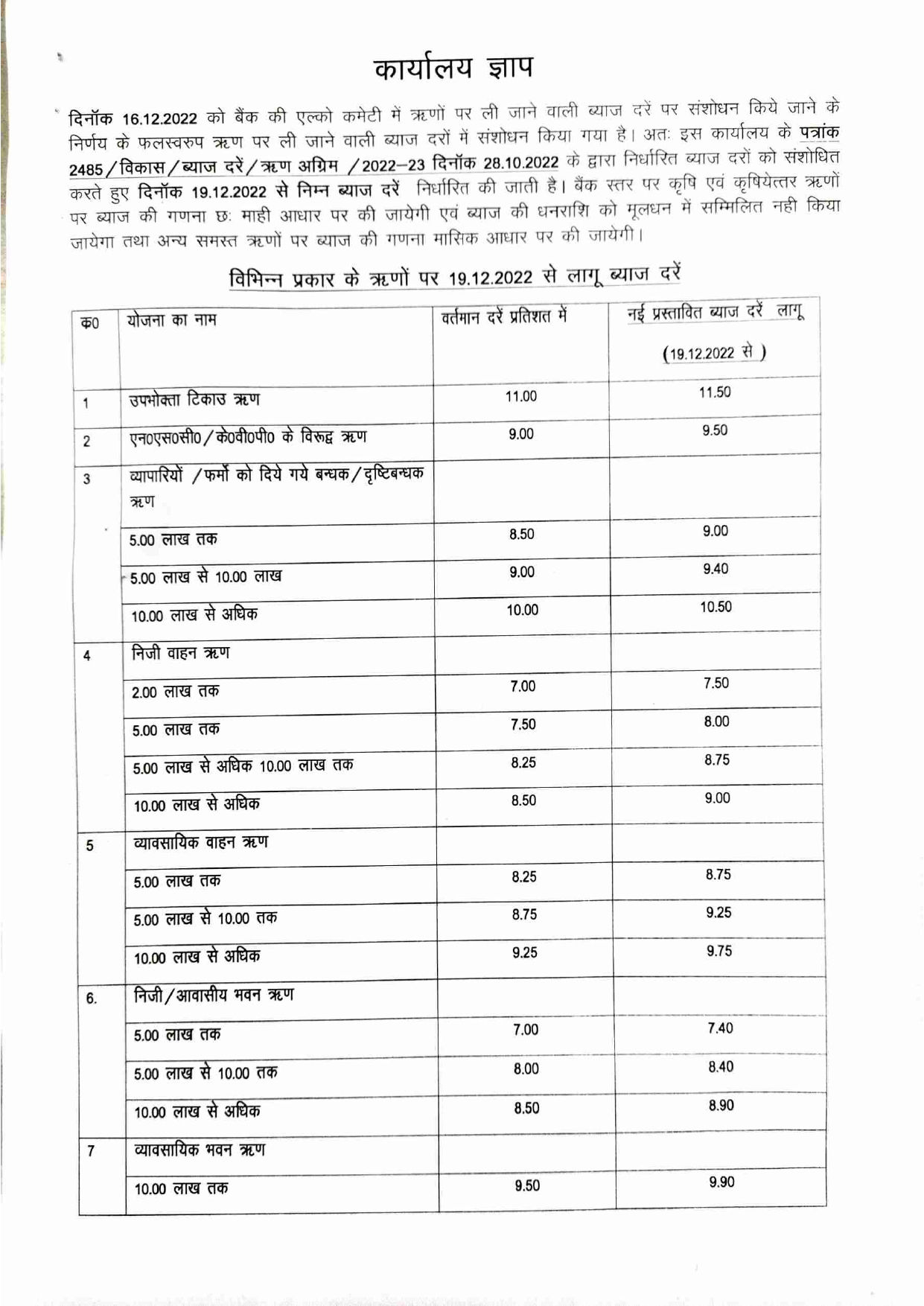 दि0 06-03-2023 से प्रभावी ब्याज दरें प्रतिशत में |